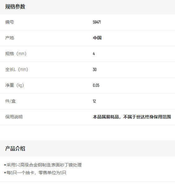 首頁>產品中心>螺絲批>旋具頭>世達30mm公制6角旋具頭4mm
