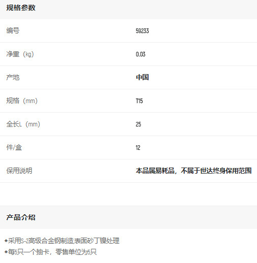 產(chǎn)品名字:世達(dá)5件6.3mm系列長(zhǎng)花形旋頭T15