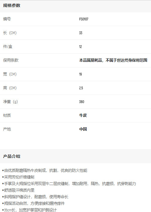 首頁>產品中心>手部防護>手套>世達斜指焊接手套L