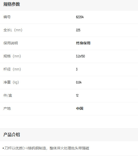 首頁>產品中心>螺絲批>一字螺絲批>世達A系列一字批3.2mm*150mm