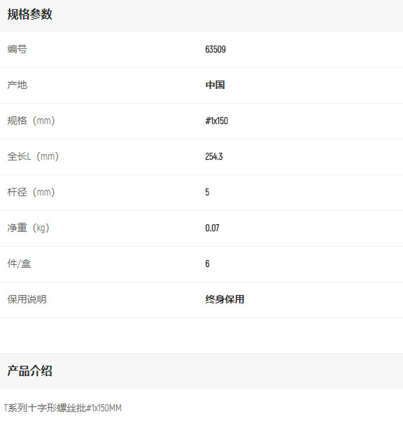 首頁>產品中心>螺絲批>十字螺絲批>世達十字批#1x150mm