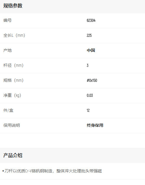 首頁>產品中心>螺絲批>十字螺絲批>世達A系列十字批#0*150mm