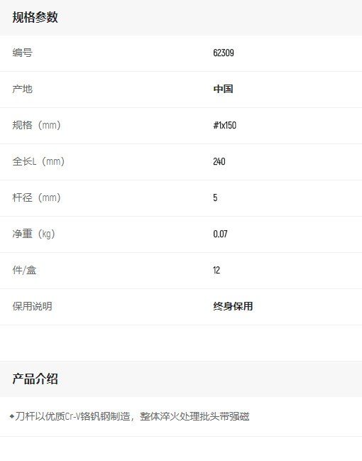 首頁>產品中心>螺絲批>十字螺絲批>世達A系列十字批#1*150mm