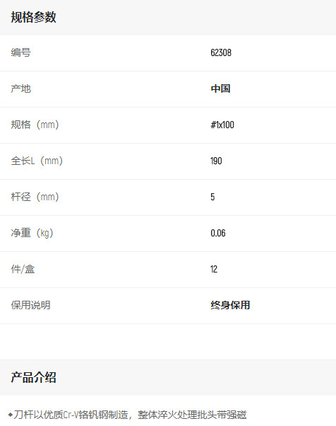 首頁>產品中心>螺絲批>十字螺絲批>世達A系列十字批#1x100mm