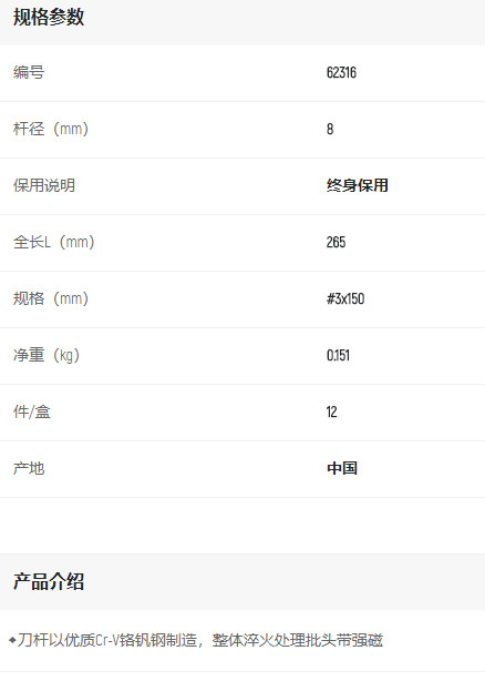 首頁>產(chǎn)品中心>螺絲批>十字螺絲批>世達十字批#3x150mm