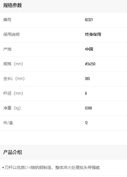 首頁>產品中心>螺絲批>十字螺絲批>世達A系列十字批#3*250mm