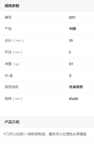 首頁>產品中心>螺絲批>十字螺絲批>世達A系列十字批#3*200mm