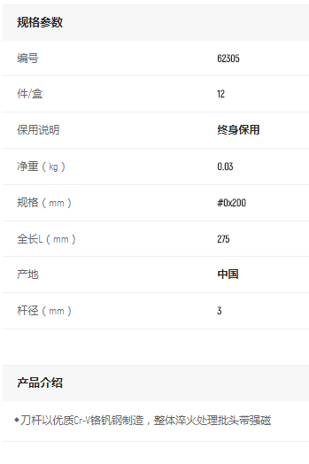 首頁>產品中心>螺絲批>十字螺絲批>世達A系列十字批#0*200mm